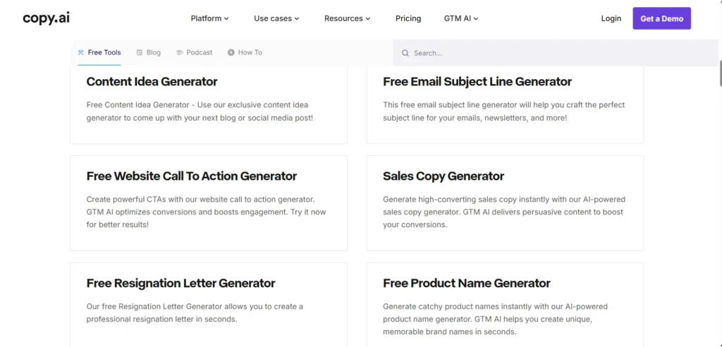 Need product descriptions, blog intros, or Instagram captions fast? Copy.ai handles all that and more.