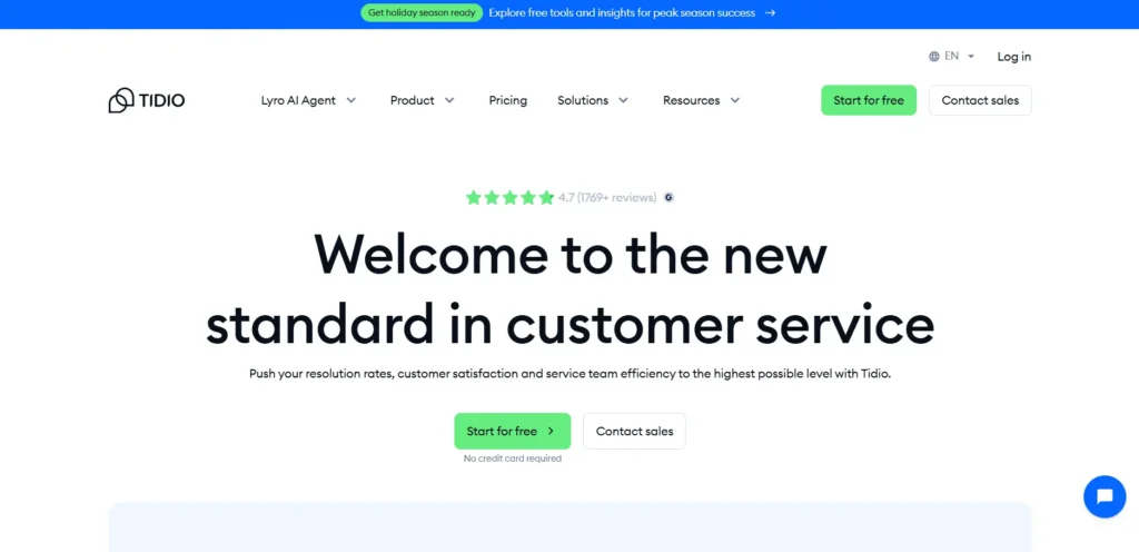 So, Tidio helps with its AI powered chat on your website. The bot can answer common customer queries and frees you up from providing support for basic things.